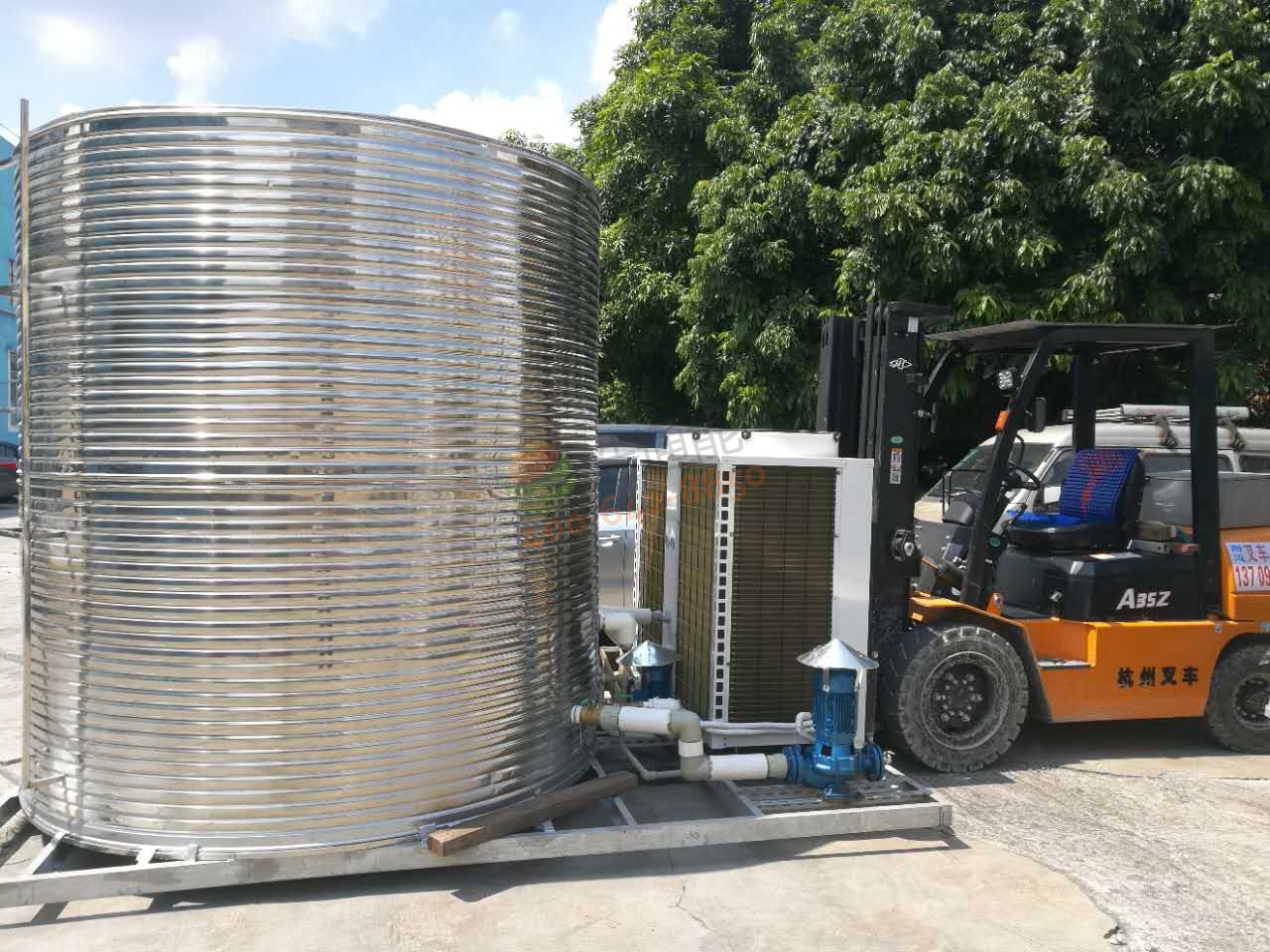 浩通能空氣能熱泵主機KFRS-33II(10P)1臺,配8.5噸不銹鋼保溫水箱1個及相關(guān)配套設(shè)施,為浩通能空氣能整體式熱水器設(shè)備一套