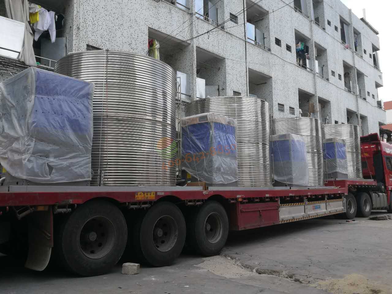 8套——KFXRS-38II(10P)美的空氣能熱泵主機1臺、10噸圓形立式不銹鋼保溫水箱1個及相關(guān)配套設(shè)施為——美的商用空氣能整體機一套