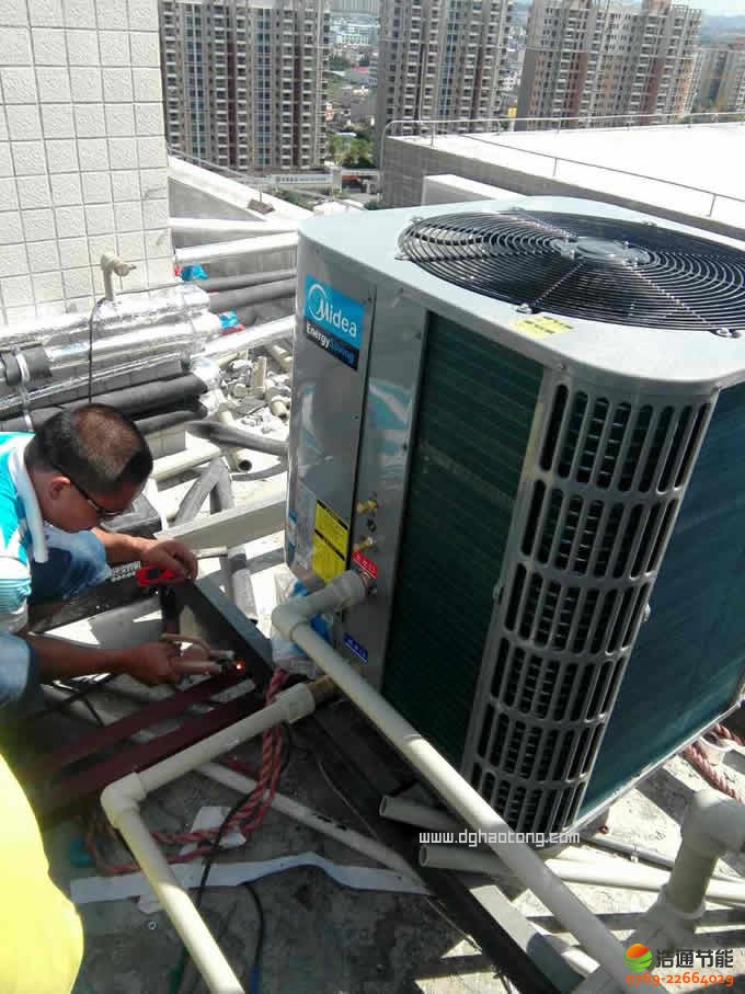 東莞市東江水務(wù)有限公司250人10匹10噸美的空氣能熱泵熱水工程--主機(jī)安裝效果圖
