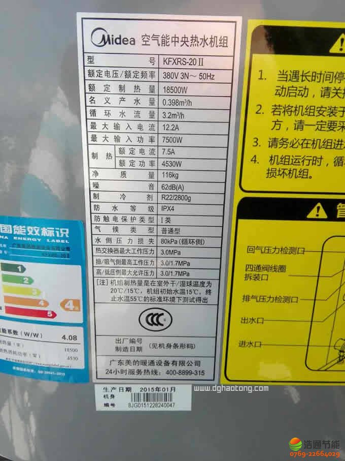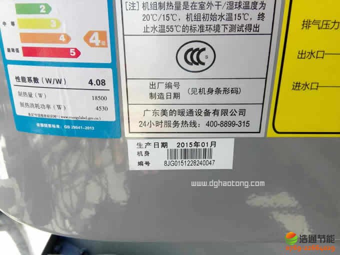 東莞市東江水務(wù)有限公司250人10匹10噸美的空氣能熱泵熱水工程--美的主機(jī)能效等級說明圖