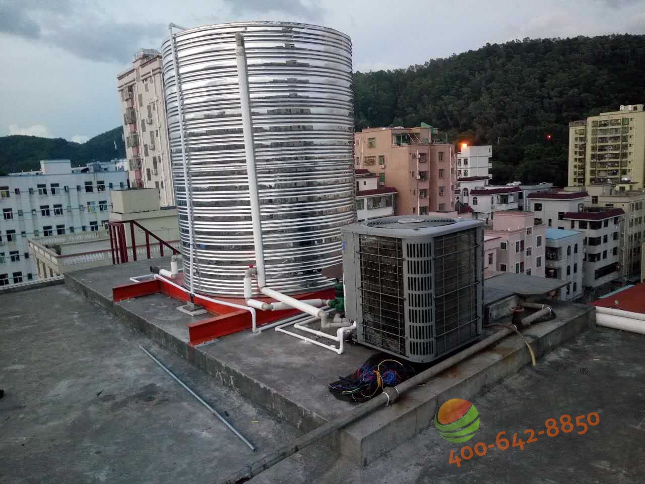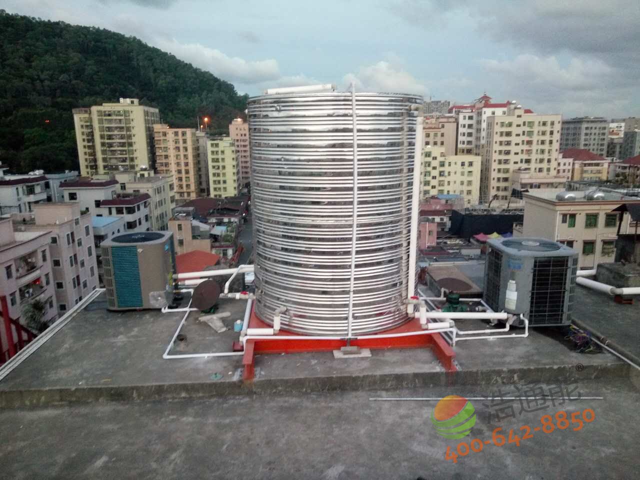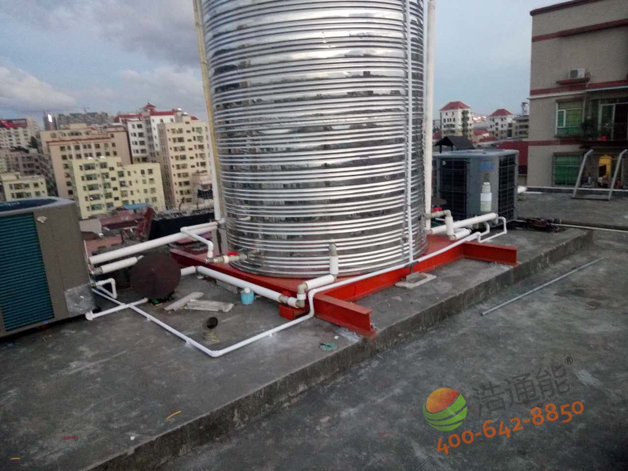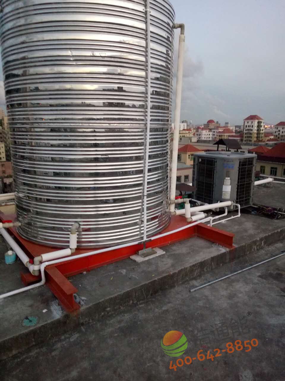 深圳寶安福惠商務(wù)賓館-美的5P5噸空氣能熱水工程——水箱底座安裝效果圖