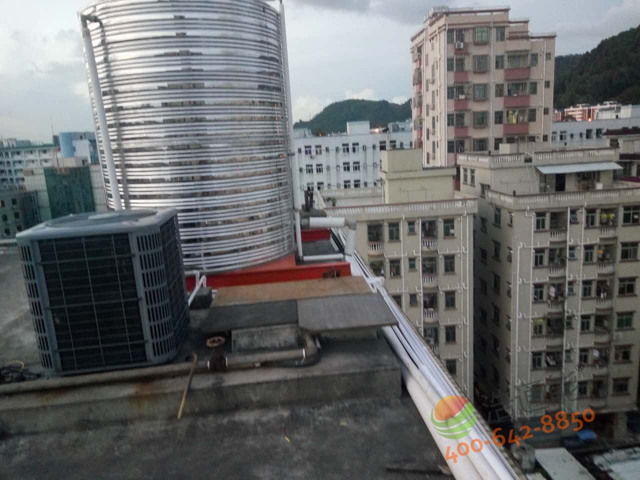 深圳寶安福惠商務(wù)賓館-美的5P5噸空氣能熱水工程——主機(jī)安裝效果圖