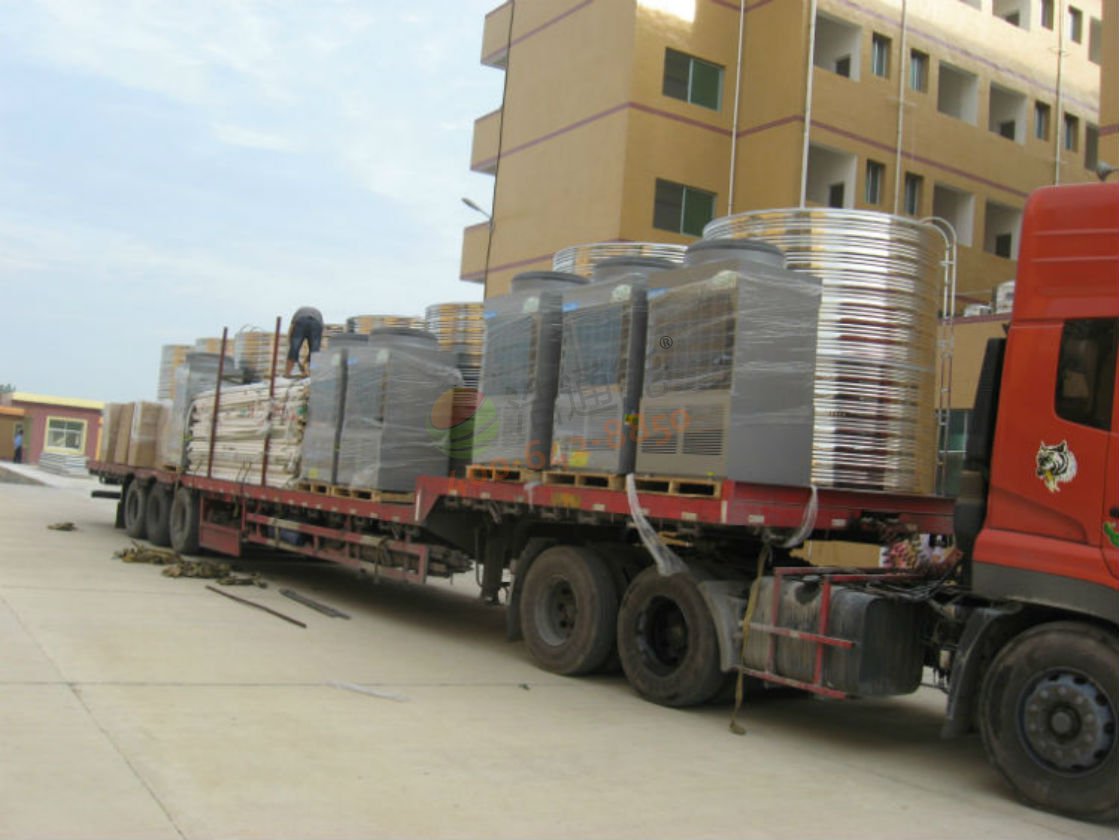 廣東華立中英文學(xué)校學(xué)生宿舍14號(hào)公寓——80噸空氣源熱泵熱水項(xiàng)目-裝車(chē)完畢
