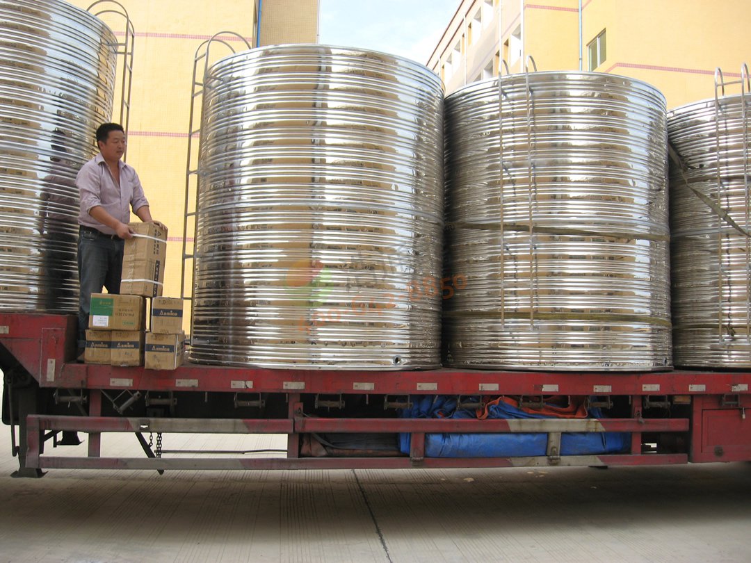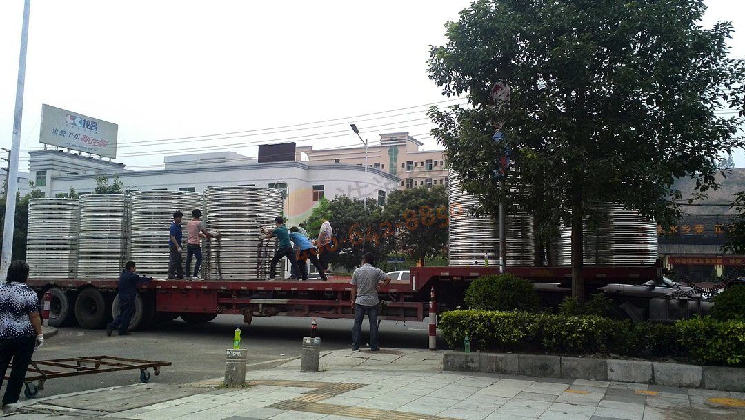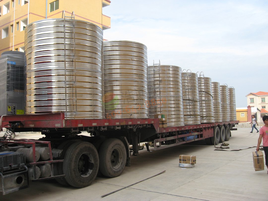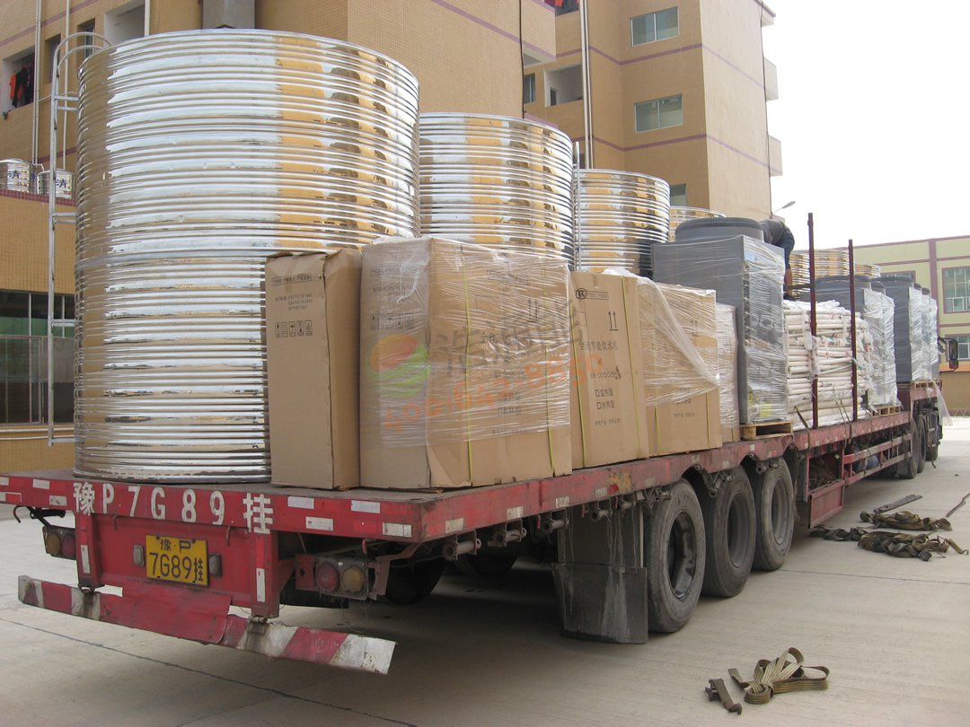 廣東華立中英文學(xué)校學(xué)生宿舍14號(hào)公寓——80噸空氣源熱泵熱水項(xiàng)目-水箱裝車(chē)