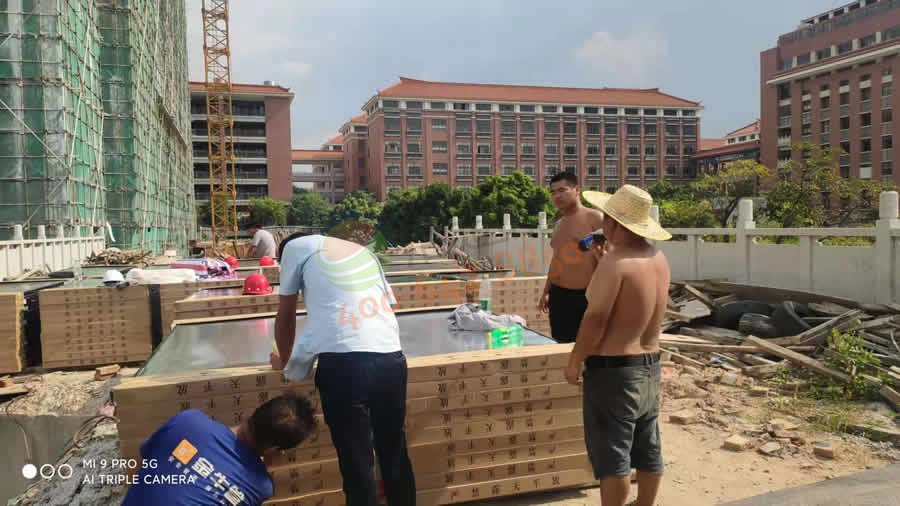 廣州增城廣雅學(xué)校2套40噸太陽(yáng)能+空氣能熱水工程項(xiàng)目-平板集熱器吊裝圖